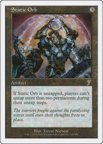 | Rules Text Contains: | If Static Orb is untapped, players can’t untap more than two permanents during their untap steps. |