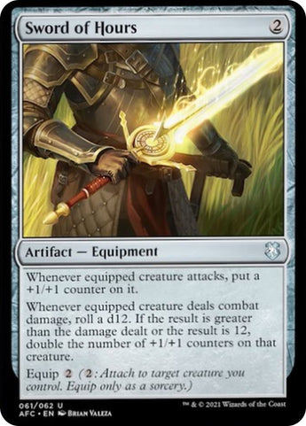 Whenever equipped creature deals combat damage, roll a d12. If the result is greater than the damage dealt or the result is 12, double the number of +1/+1 counters on that creature. Equip 2 (2: Attach to target creature you control. Equip only as a sorcery.) |